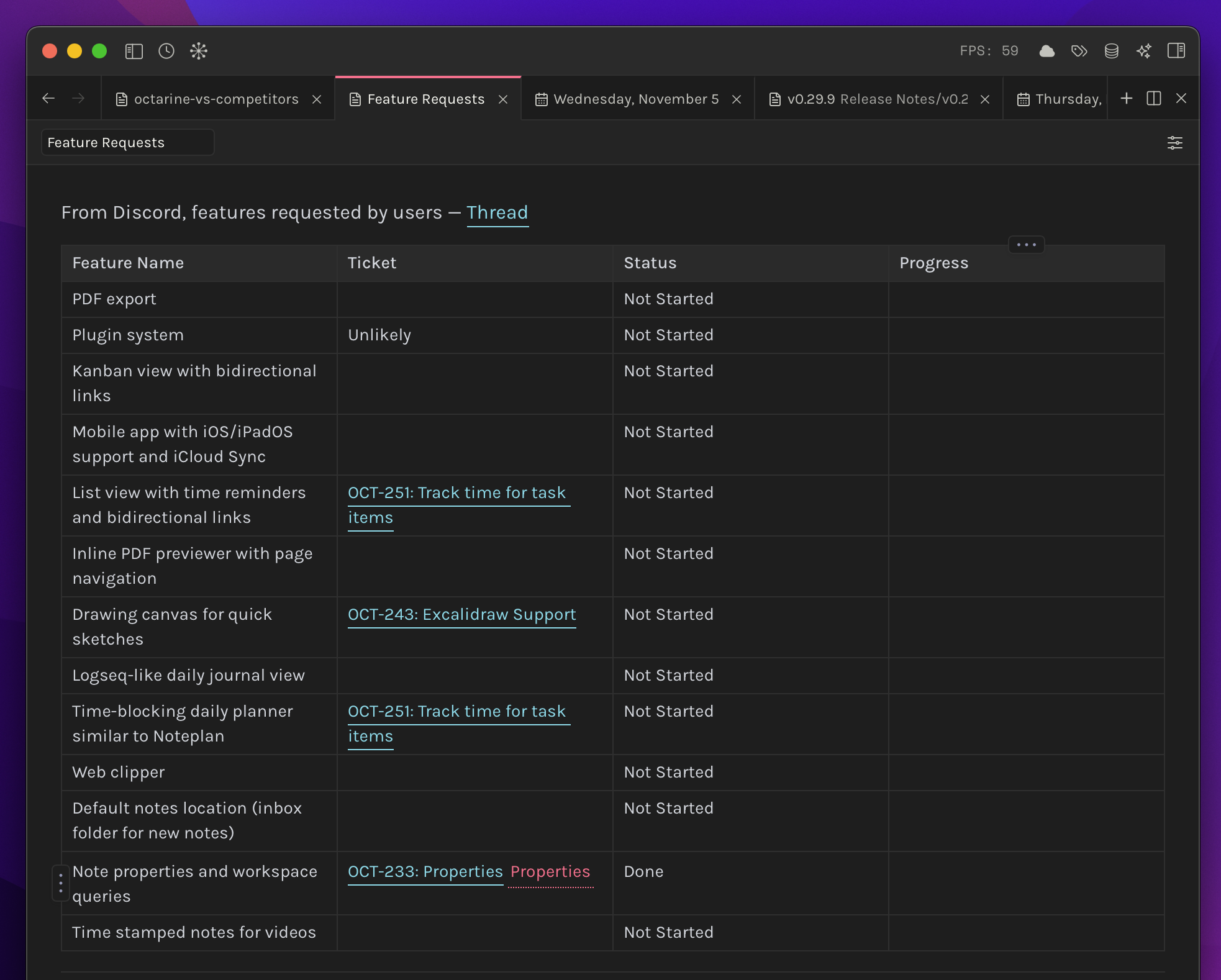 Tables in Octarine support rich formatting and come with built-in tools to help you organize and manipulate data efficiently.