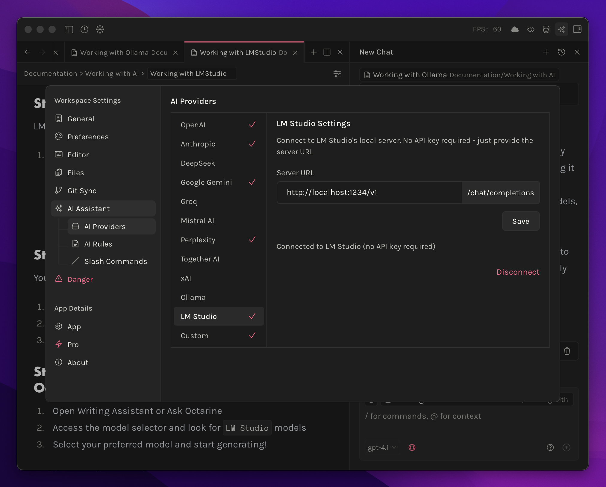 Learn how to connect your local LMStudio to Octarine to use Writing Assistant and Ask Octarine